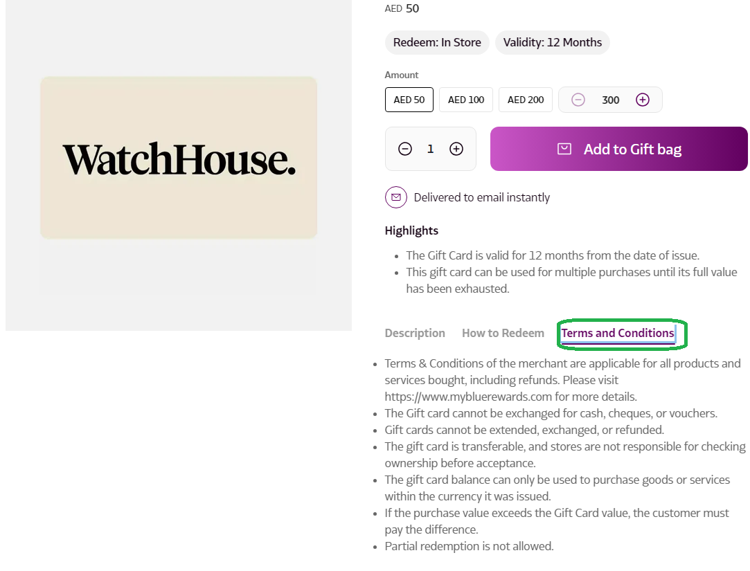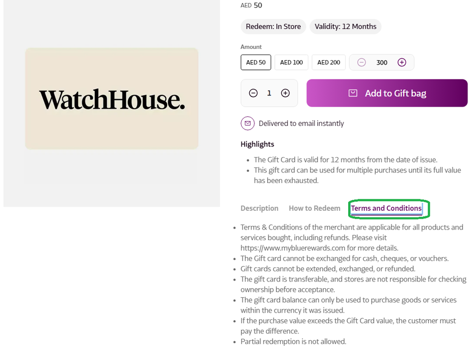 Gift Card usage depends on the brand’s Terms and Conditions. They can be used at all participating retail outlets of the specific brand. Any restrictions or special cases will be detailed in the 'Terms & Conditions' section of each Gift Card.