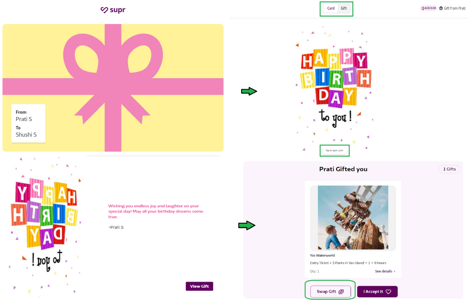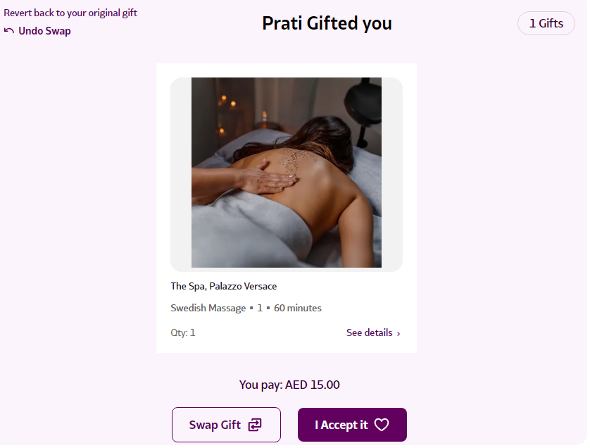 With Supr, you never have to worry if you're not thrilled with the gift you received. You have the unique option to swap it for another of equal or lesser value. When you choose to swap, you'll be presented with a selection of carefully curated products, ensuring you always get something you truly want. If the item you'd like is of higher value, you can still have it by simply paying the difference.
